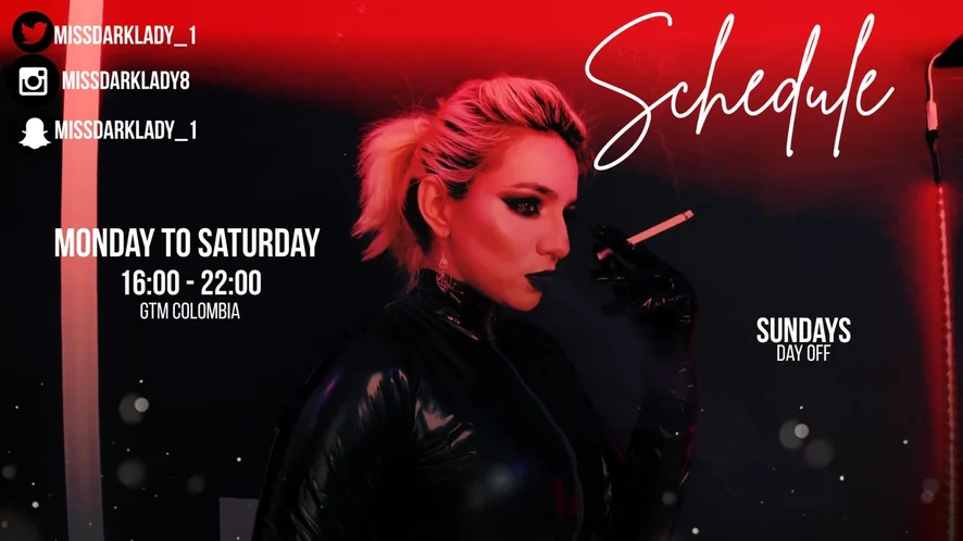 抽烟, 手淫指导, 穿戴式阳具, 快闪裸体, 大屌评分, 情妇, 色情舞, 紧身内衣, 皮革, 下流話, 脱衣舞, 恋足, 羞辱, 情境扮演, 赤裸上身, 乳胶, 丝袜, 高跟鞋, 性玩具, 高潮, 精油表演, 电臀舞, 自慰, 裙底风光